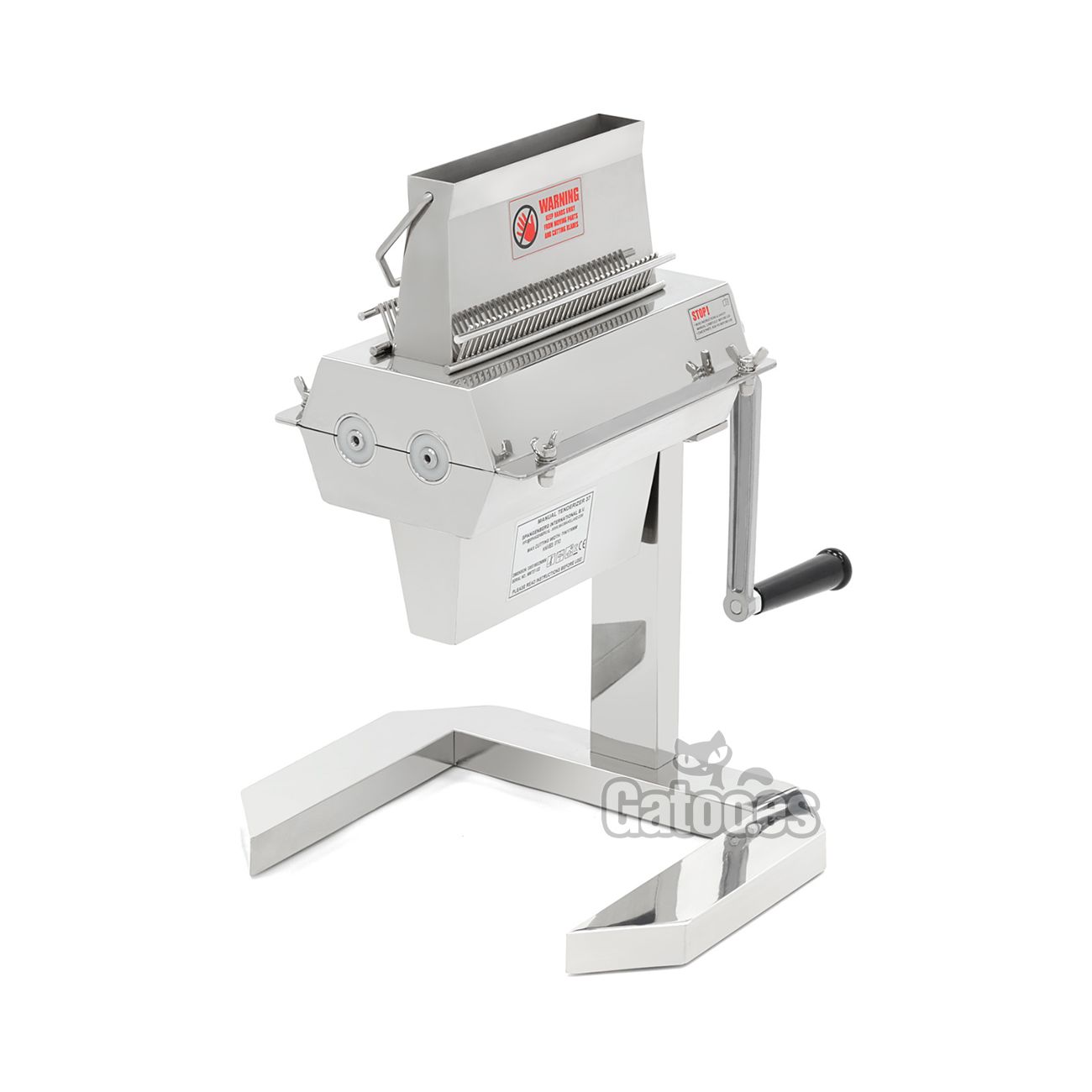Robusta base de apoyo en acero inoxidable con ventosas que garantizan una estabilidad total. Todas las piezas de la máquina ablandadora de carne son totalmente desmontables para limpiar profundamente todas ellas.