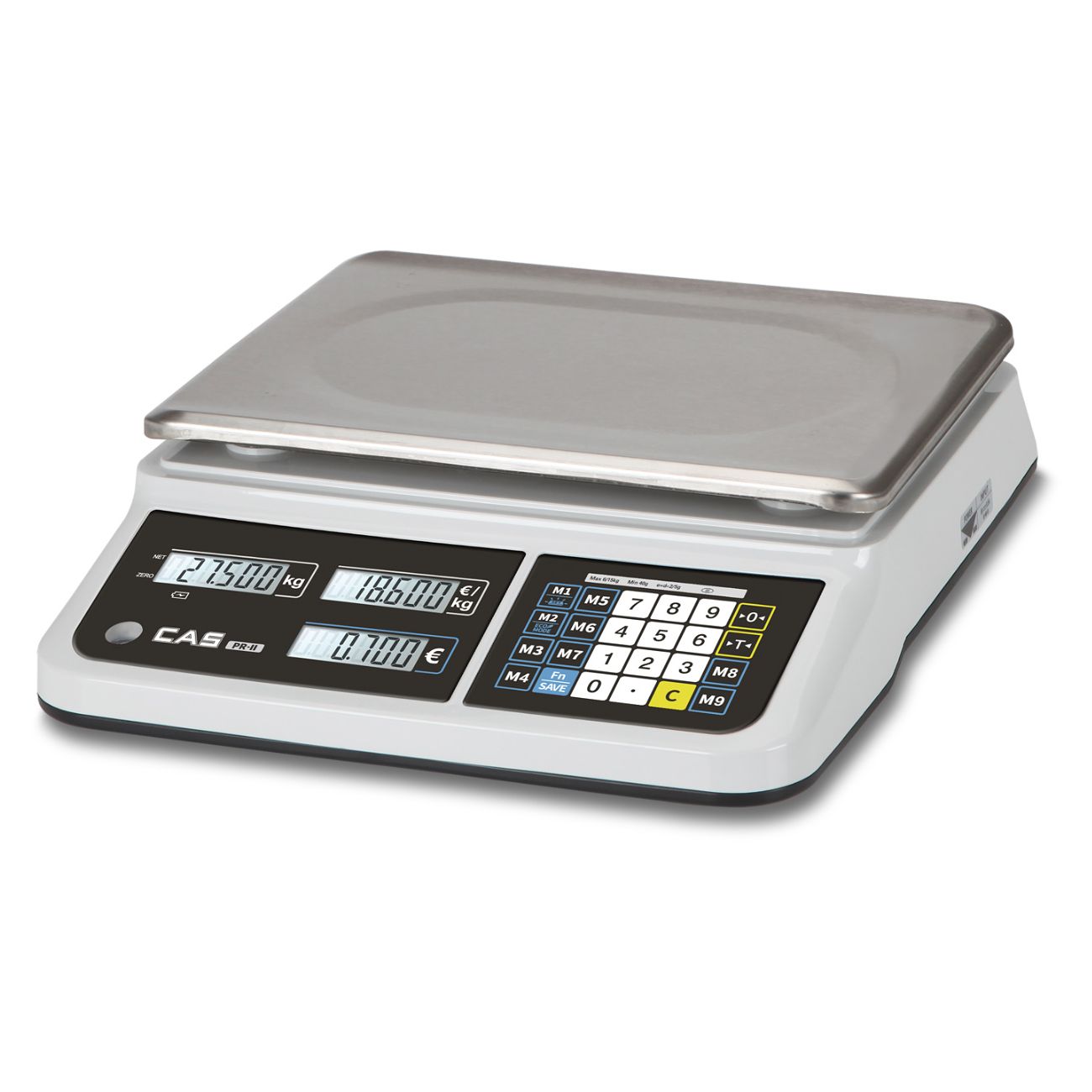 Este modelo de báscula comercial industrial plana tiene doble pantalla, una vista hacia el comprador y otra cara al vendedor. En la memoria se pueden grabar precios con 7 PLU's directos a una tecla.