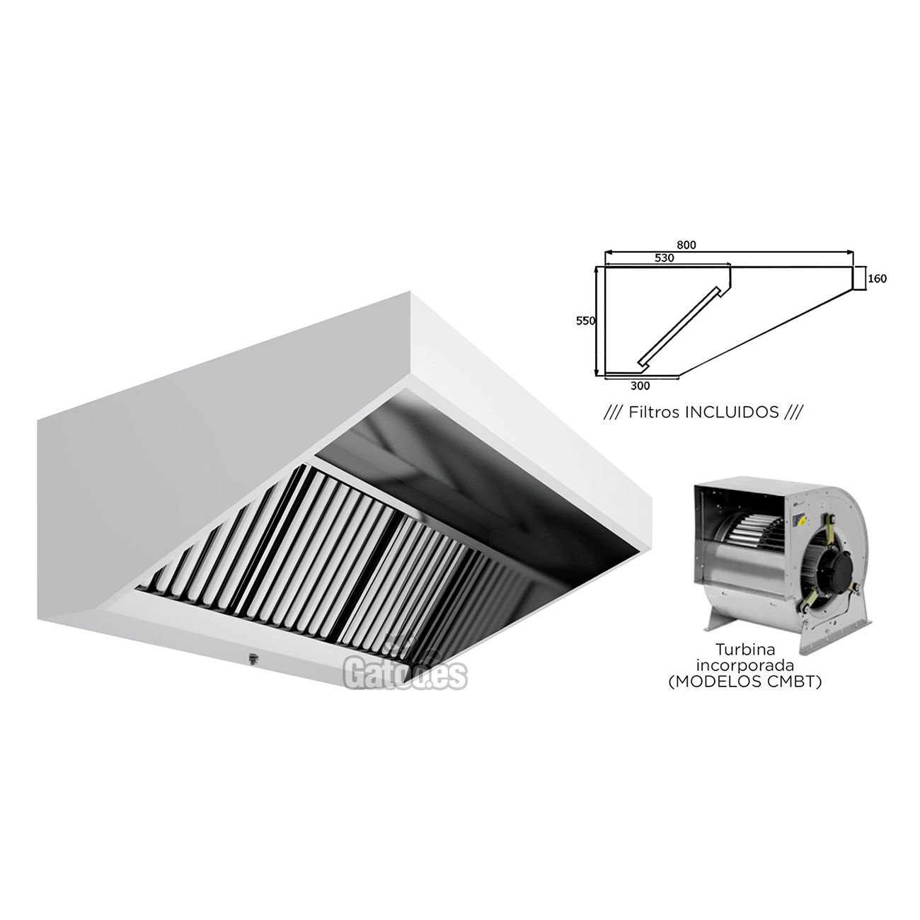 Campana Extractora Industrial para techos bajos. Incluye Turbina. Ancho 150 cm. (OUTLET Reacondicionado)
