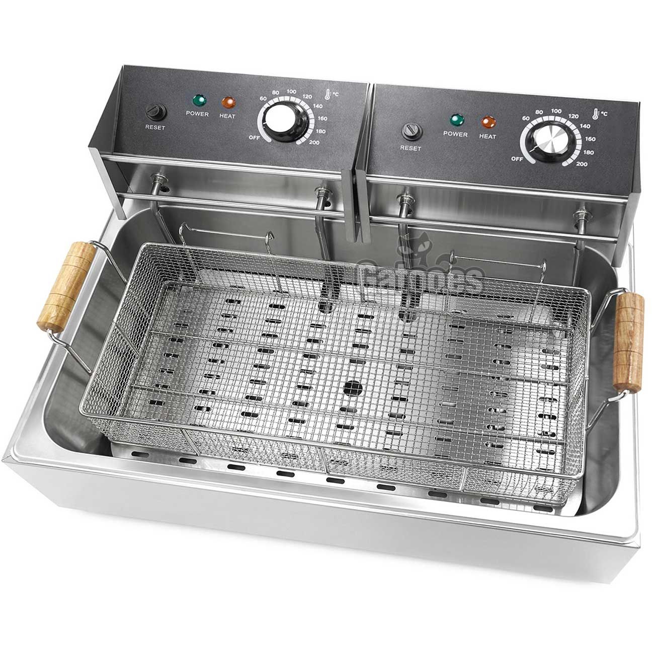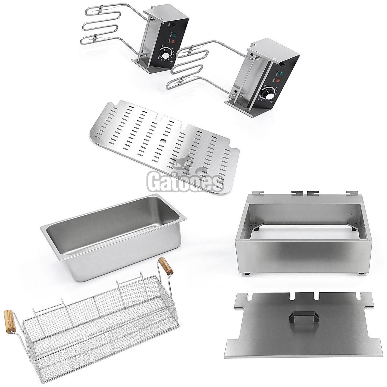 Resistencias protegidas con soporte de parrilla de acero inoxidable para asentar la cesta.