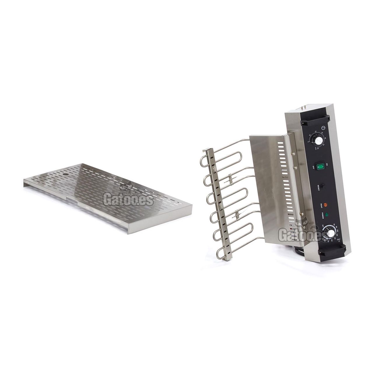 Termostato de temperatura regulable de 50ºC a 200ºC, temporizador, termostato de seguridad, contactor y microrruptor.