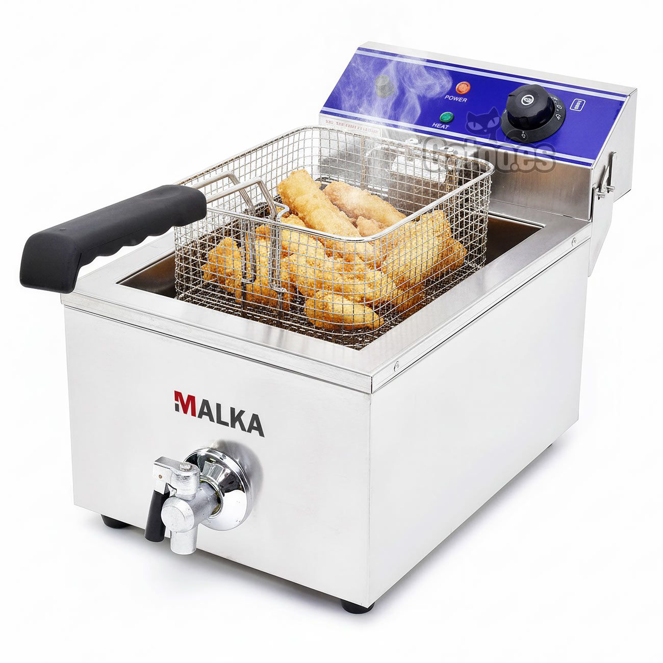 Con termostato de regulación y de seguridad. Cabezal desmontable y válvula de vaciado del aceite. Muy fácil limpieza.