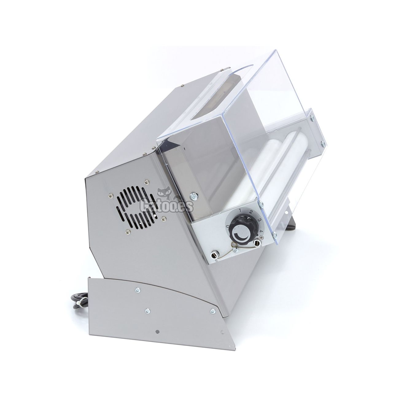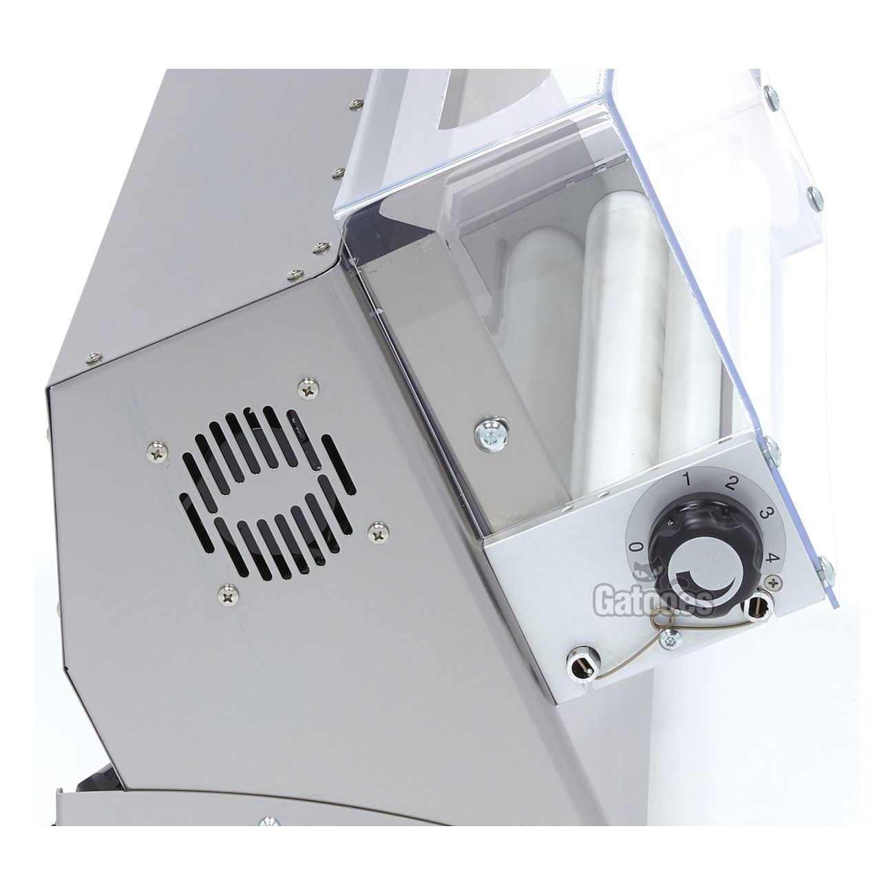 Con esta laminadora de masa se pueden preparar cocas, quiches, empanadas y pizzas de un diámetro de 26 a 45 cm. y un grosor hasta de 4 mm. En la máquina se pueden cargar desde 210 a 700 gramos de masa por operación. El interruptor de funcionamiento tiene 2 posiciones, muy sencillo de utilizar y no calienta la masa.