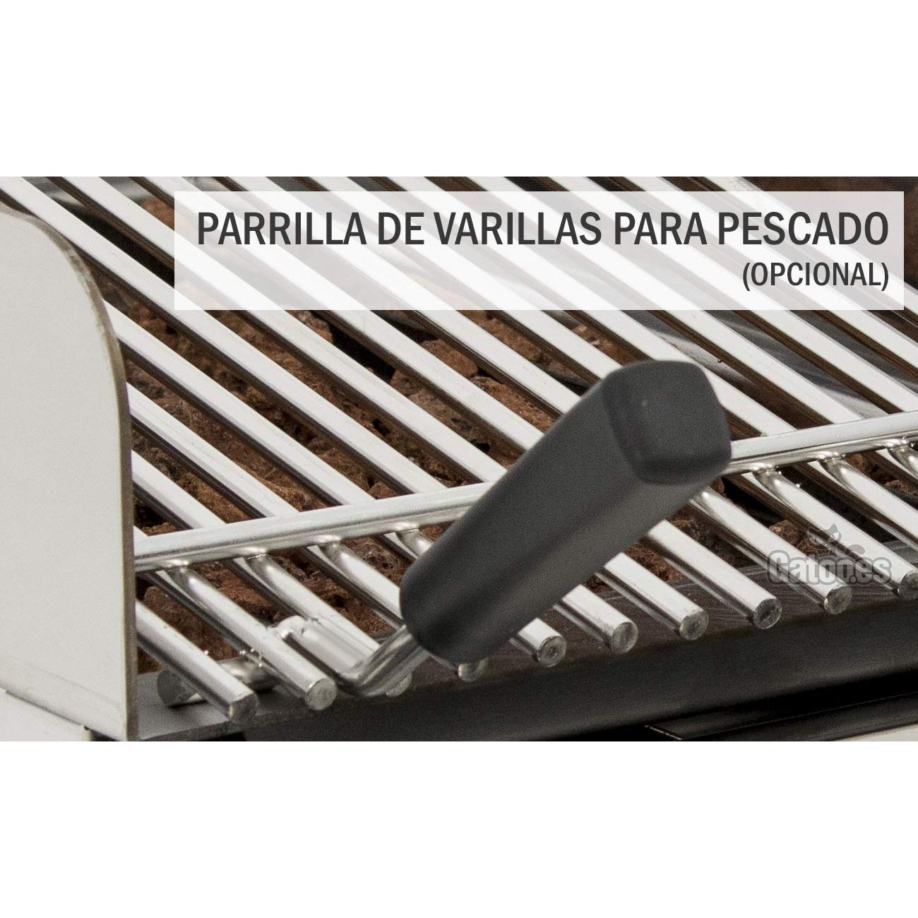 Parrilla de varrillas para pescados: Para el asado de todo tipo de pescados se puede añadir parrilla de varillas en acero inoxidable (opcional).