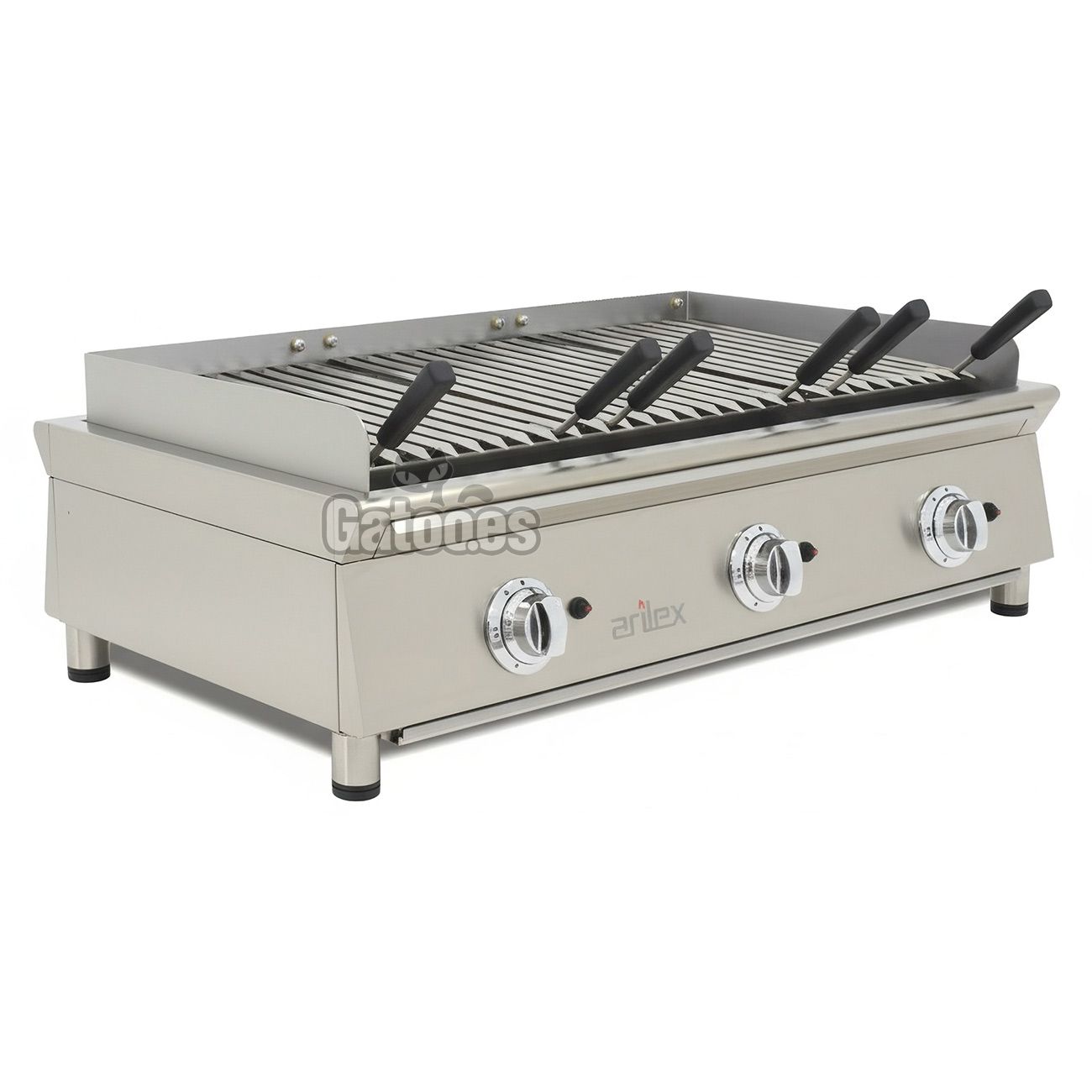 - Tipo de parrillas: Acanaladas Acero Inoxidable incluidas. Opcional: Parrilla de Varillas Inox para Pescado.