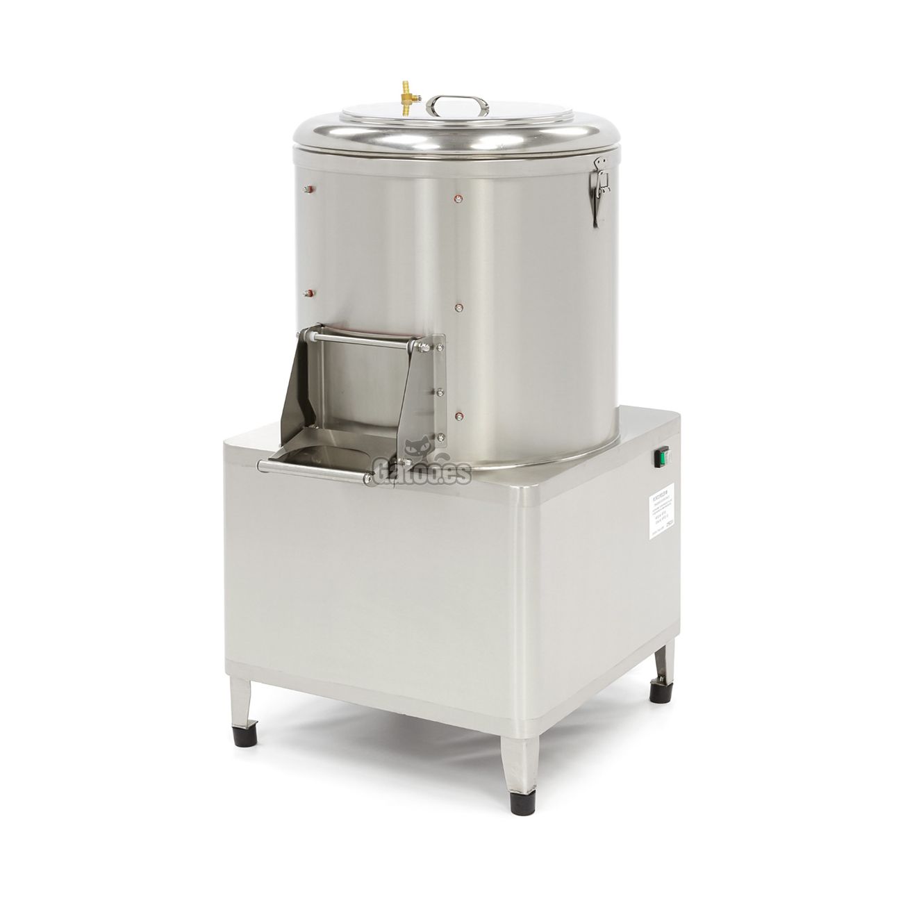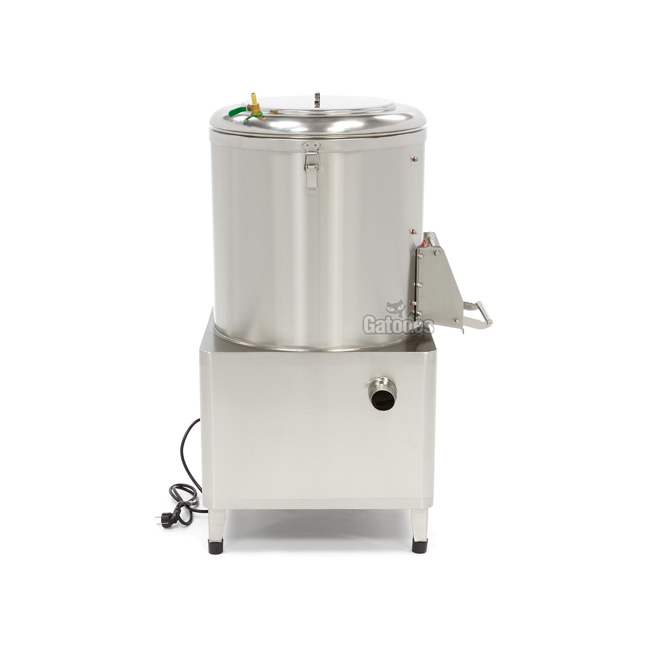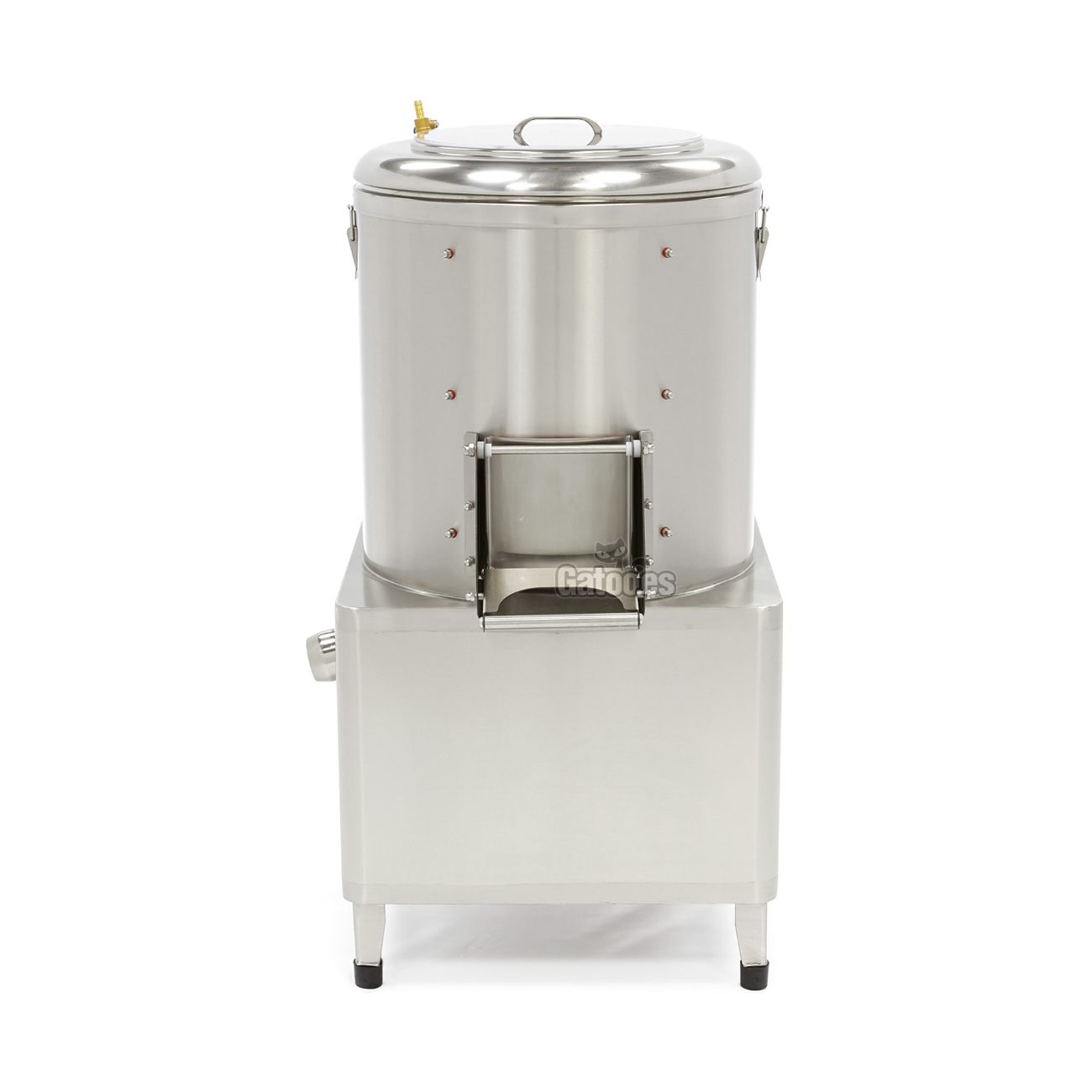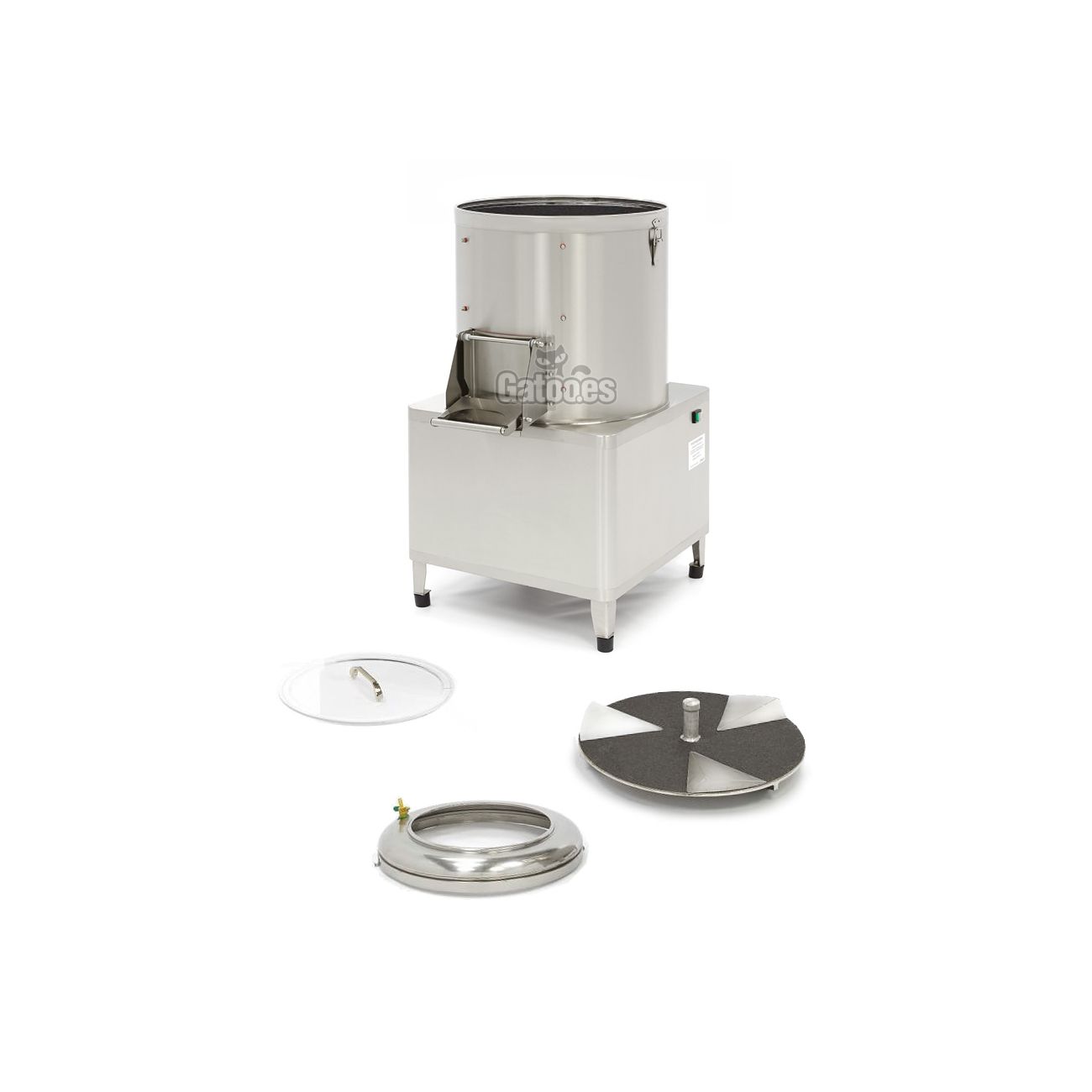 Pelador de patatas industrial construido con carcasa, recipiente y puerta en Acero Inoxidable. Es la máquina adecuada para negocios de hostelería como restaurantes, bufets y bares que tienen en sus cocinas un gran volumen de trabajo y necesitan ahorrar tiempo al pelar hortalizas. Con el recipiente lleno pela en un ciclo de 2-3 minutos hasta 30 kilos de patatas, nabos, zanahorias, remolachas y otras hortalizas, consiguiendo una producción de 600 kilos por hora.