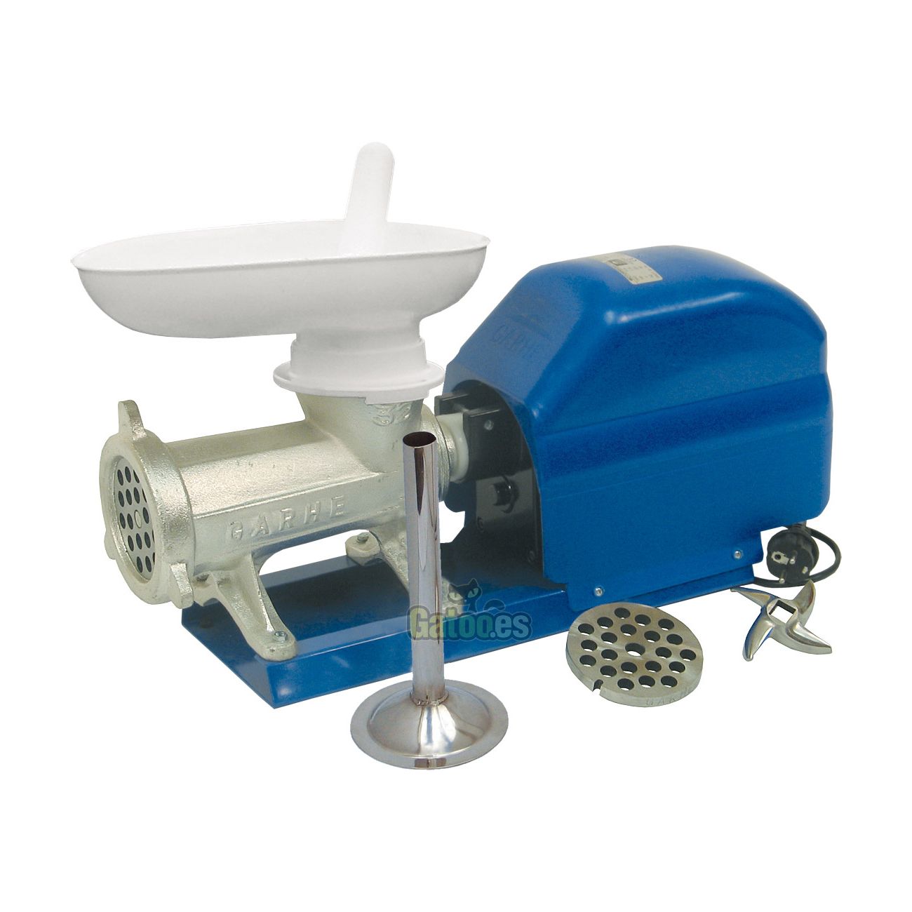 Es una máquina Picadora-Embutidora Eléctrica con cabezal de 32 cm. sujeto sobre base metálica que le hace sea más robusta. El motor va cubierto por una carcasa de plástico duro muy resistente. Es totalmente recomendable para negocios con una gran producción de carne.