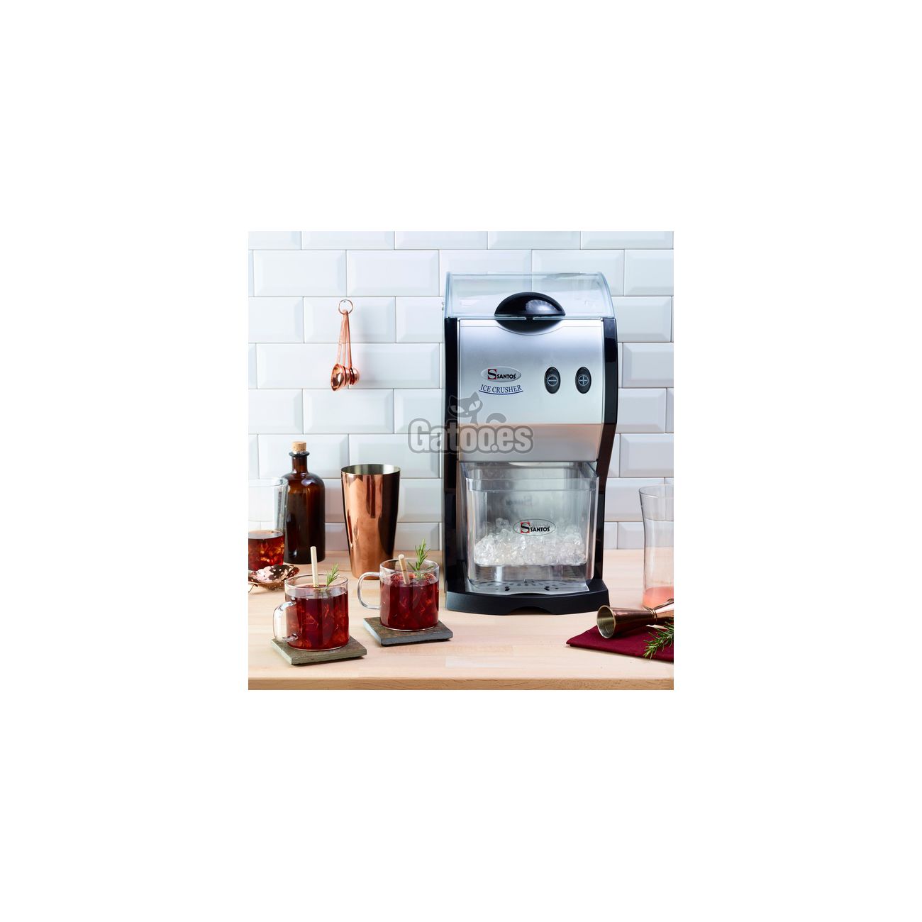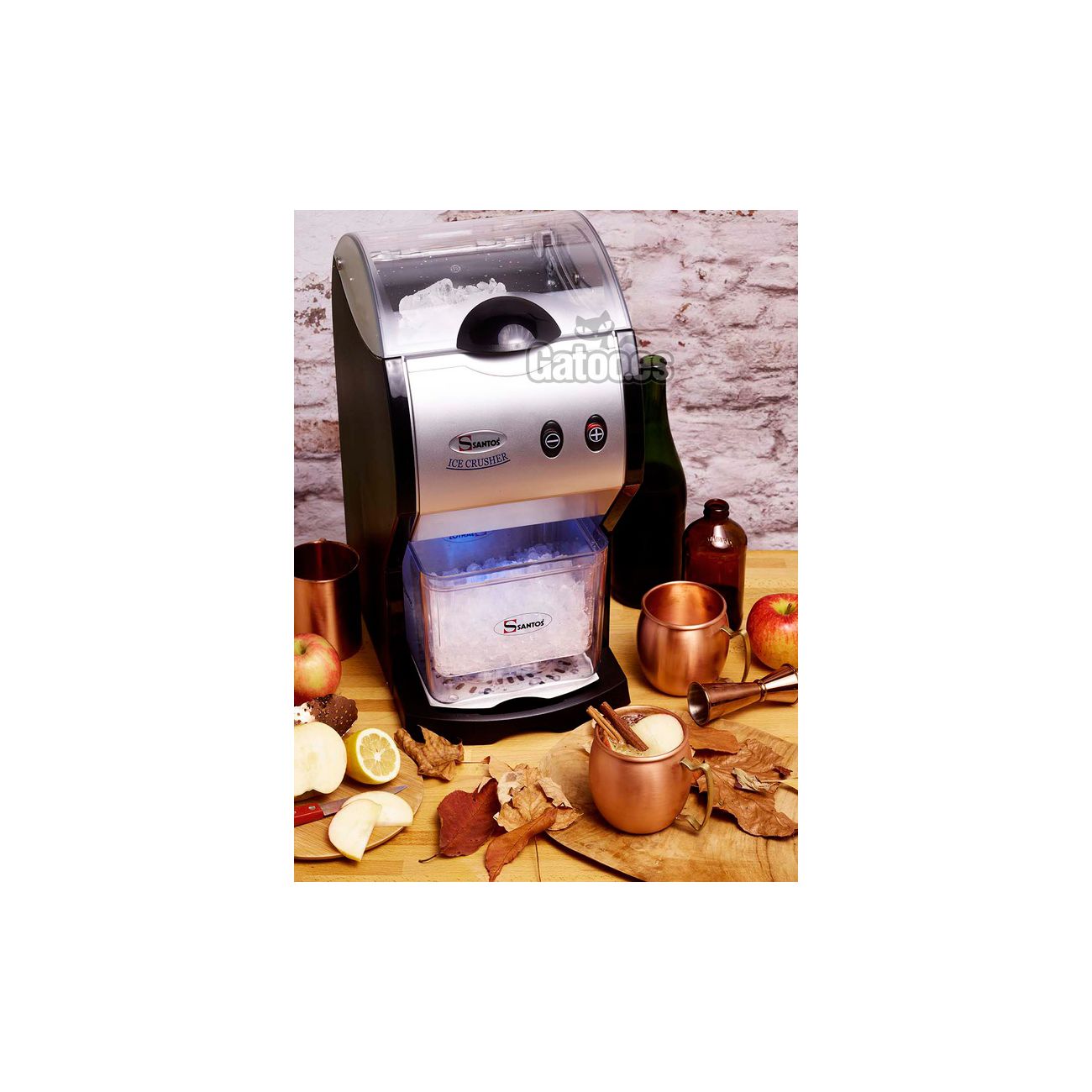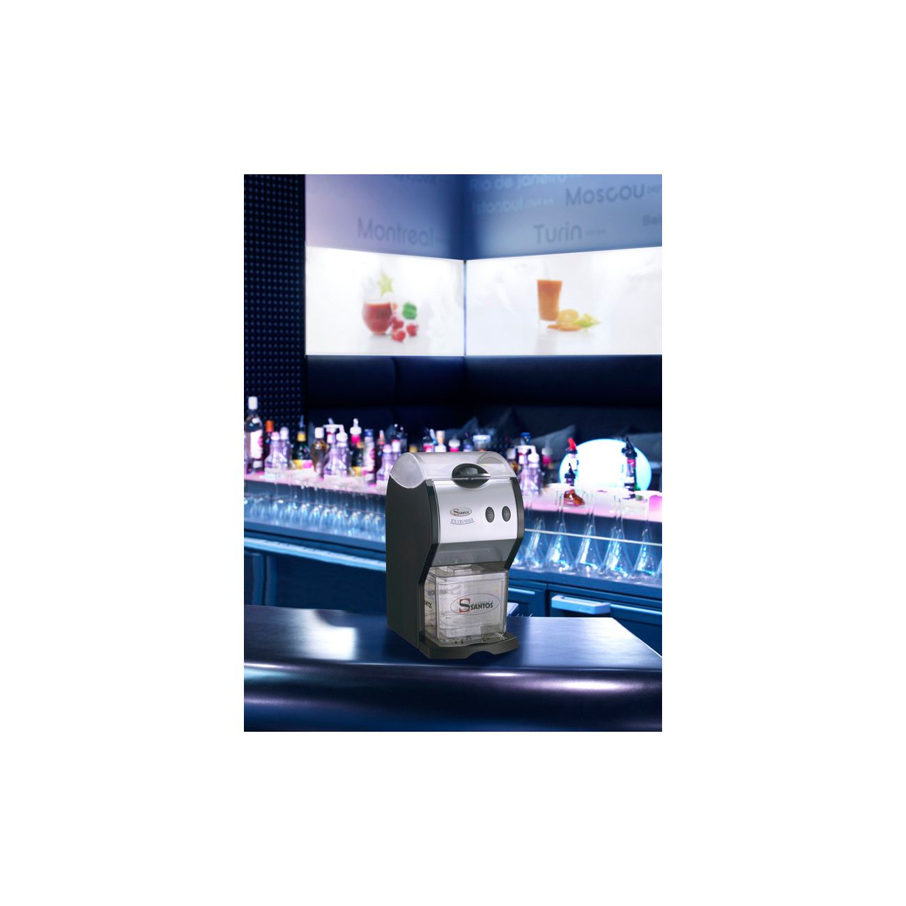 La marca Santos ha creado esta máquina trituradora de hielo profesional para usos intensivos de bares, restaurantes, cafeterías, discotecas, pubs, etc. En definitiva, orientado para usos de la hostelería.